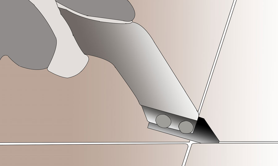 1. Börja med att rensa ur fogen runt plattan du ska byta ut med fogrensaren.